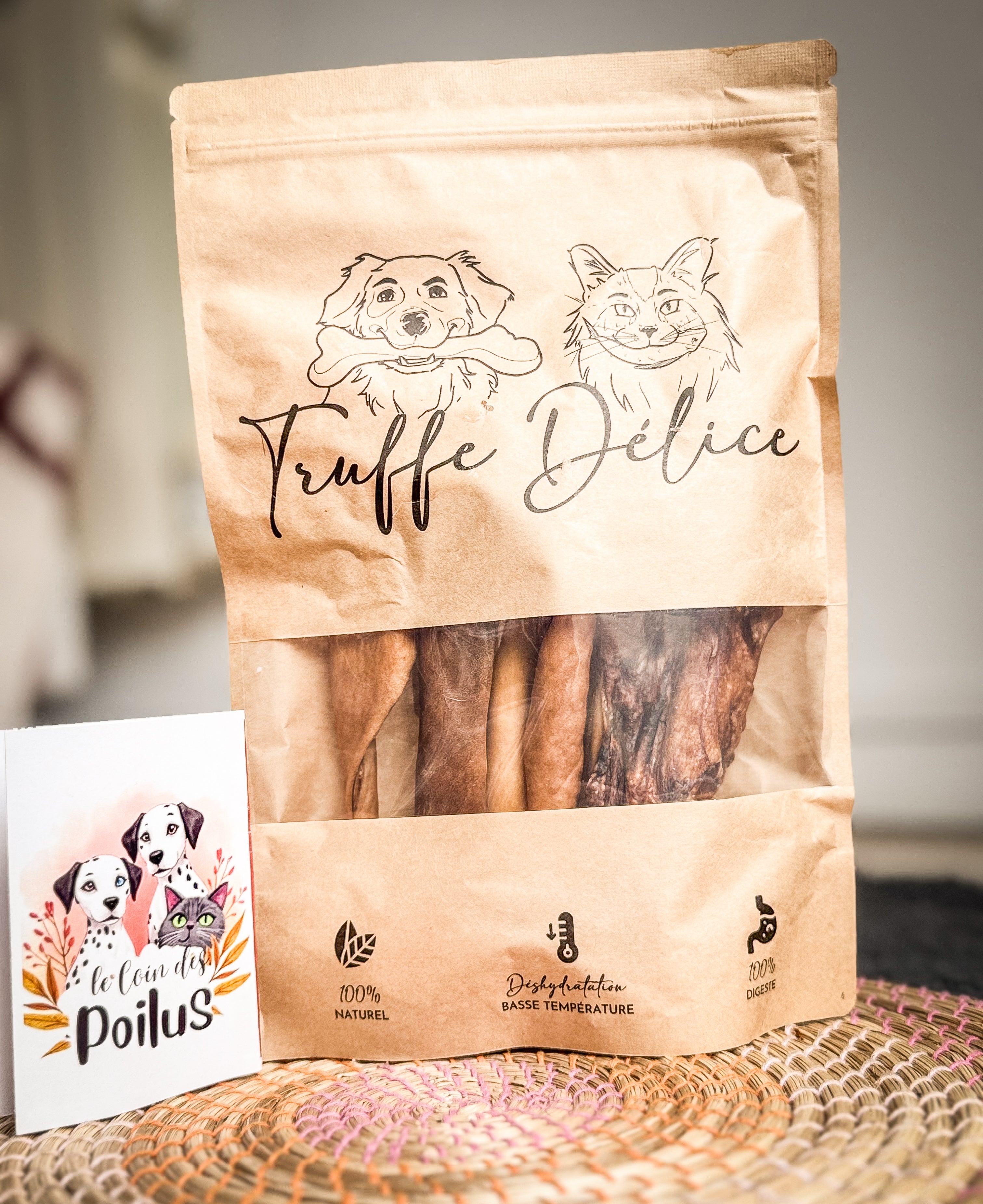 " Une super boutique pour gâter son loulou 😁. Les produits sont de qualités et vos animaux vont se régaler, vous pouvez commander les yeux fermés ! Julie est adorable, l'envoi des colis est très rapide et soigné ! Pandor se lèche les babines à chaque fois qu'il reçoit un colis du Coin des Poilus 🥰